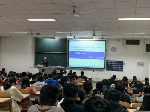 组织2016-2019四个年级光电信息科学与工程专业726名全体学生参加了专业认证宣讲会。宣讲会分别于10月28日、29日晚在教1-204与图书馆报告厅分三次进行。