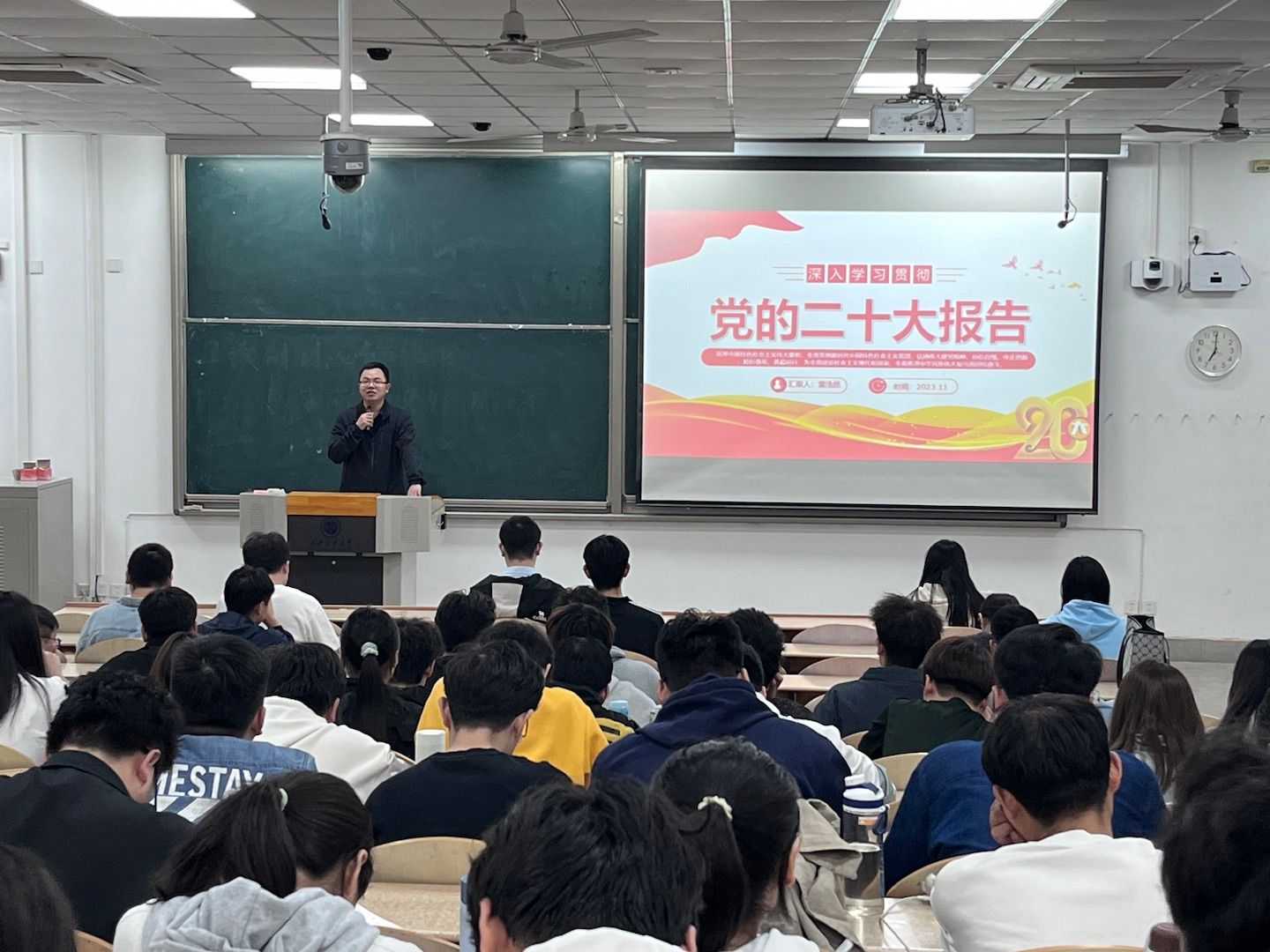 雷浩然以党的二十大召开的意义为切入点,阐述“三个务必”的含义------务必不忘初心、牢记使命,务必谦虚谨慎、艰苦奋斗,务必敢于斗争、善于斗争。他强调新时代青年大学生要用党的二十大精神武装头脑,端正态度,服从组织要求,使班集体更有活力。