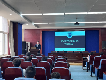 首先,朱学亮发表动员讲话。他结合自身经历与行业发展趋势,向同学们提出三点期望:一是要树立“先就业,再立业”的务实观念,勇于迈出职业生涯第一步,在实践中积累经验、找准方向;二是要坚定“有行业自信”的专业底气,指出光电领域作为国家战略性新兴产业,前景广阔、大有可为,鼓励同学们看到专业的价值和未来的潜力;三是要“守初心,担使命”,将个人发展融入国家科技进步的浪潮中,在服务社会中实现人生价值。院长的讲话语重心长,为同学们注入了强大信心与动力。
