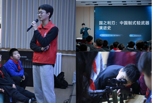 活动中,宣讲团志愿者周易以“科普讲座+互动体验”的形式,围绕中国制式轻武器演进史展开专题讲解,从建国初期“万国牌”兵器困境切入,系统介绍56式、81式等国产枪械的发展脉络,生动展现我国兵器工业从仿制到自主、从弱到强的奋斗历程,结合专业知识让同学们直观感受军工科技的魅力。互动环节中,志愿者设置知识问答、兵器模型操作等趣味环节,耐心解答孩子们的疑问,将专业知识转化为通俗易懂的讲解,让国防科技知识在沉浸式体验中入脑入心。同时,结合长征胜利90周年,志愿者讲解古计时工具的智慧与国家授时中心的意义,将科学知识、红色历史与家国情怀深度融合。