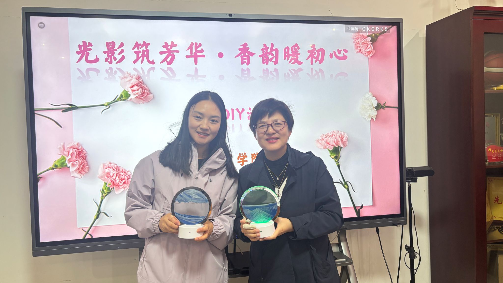 本次活动DIY制作香氛沙画小夜灯,院工会为每位女教工精心准备了专属定制材料包,搭配馥郁香氛与多彩细沙,全程安排工作人员现场指导。从沙画铺陈、图案创作,到封层固化、灯体组装,女教工们放下忙碌、静心创作,指尖轻捻细沙,勾勒出专属的创意图案,在氤氲的香氛与舒缓的轻音乐中,沉浸式感受手工创作的乐趣与治愈。活动现场氛围温馨融洽,大家相互交流、分享创作灵感,欢声笑语不断。