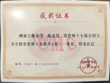 作为国内极具影响力的本科生数学学科赛事,本次竞赛由中国数学会主办、四川大学协办,吸引了全国千余所高校、三十余万名学生踊跃参与。经过多轮严格遴选,仅有千余名学子成功晋级全国决赛,其中非数学A类赛道一等奖名额仅120个,获奖比例极低,竞争异常激烈。朱文昊同学凭借清晰的解题思路与扎实的知识储备顺利突围,更得到中国数学会理事长、中国科色情app