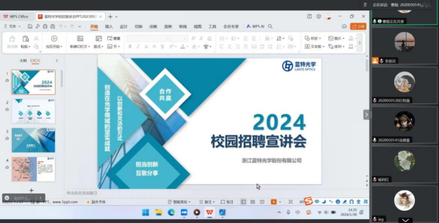 邀请浙江蓝特光学股份有限公司人力资源部门负责人曹留先生为2024届毕业生举办线上专场招聘宣讲会,色情app