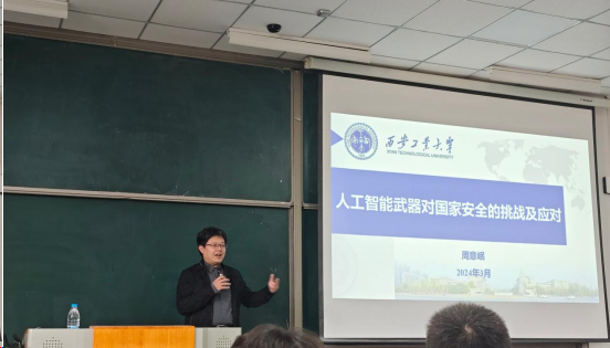 周意岷老师在教1-103教室作“人工智能武器对国家安全的挑战及应对”主题讲座。色情app