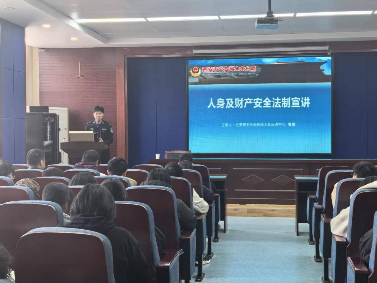 邀请西安市公安局未央分局刑侦大队反诈中心曹警官进行安全法制教育专题讲座,会议由学工办主任刘强珺主持,色情app