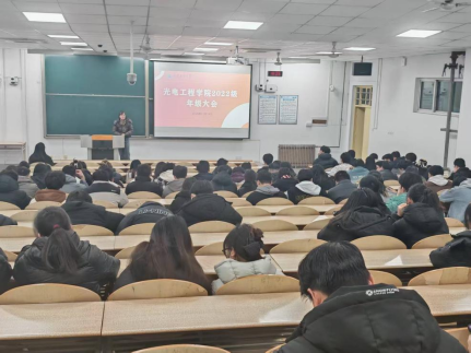 2022级在教1-101召开假期安全教育大会,会议由学工办主任刘强珺主持,2022级辅导员李俊洁、全体学生参会。
